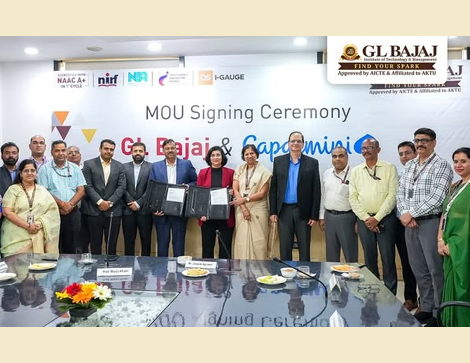 GL Bajaj Institute of Technology & Management (GLBITM) signed a Memorandum of Understanding (MoU) with Capgemini, marking a new chapter in industry-academia collaboration. Following the MoU signing, 500+ students from B.Tech, MBA, and MCA programs acquired practical understandings on the growing importance of SAP and its role in shaping future careers. The interactive session, filled with discussions and a lively Q&A, left students inspired and future-ready.