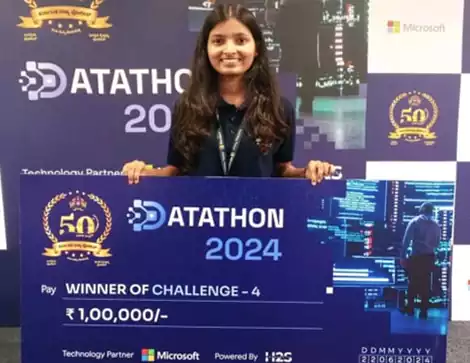 Mahima Maurya, Department of Information Technology, with her team secured 1st Prize in the Karnataka State Police Datathon, June 2024, held at the Microsoft Office, Bengaluru. Competing against working professionals and start-ups, the team showcased outstanding data analysis and problem-solving abilities.
