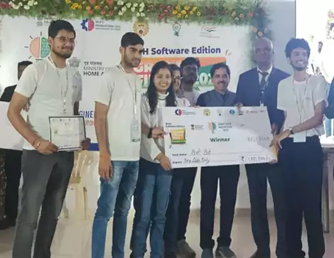 Mahima Maurya and Ashutosh Gupta secured first position with their team in the Smart India Hackathon (SIH) 2023, held in Ongole, Andhra Pradesh. They received a cash prize of Rs. 1 lakh for their outstanding solution. The event brought together innovative minds from across the country to solve real-world challenges.