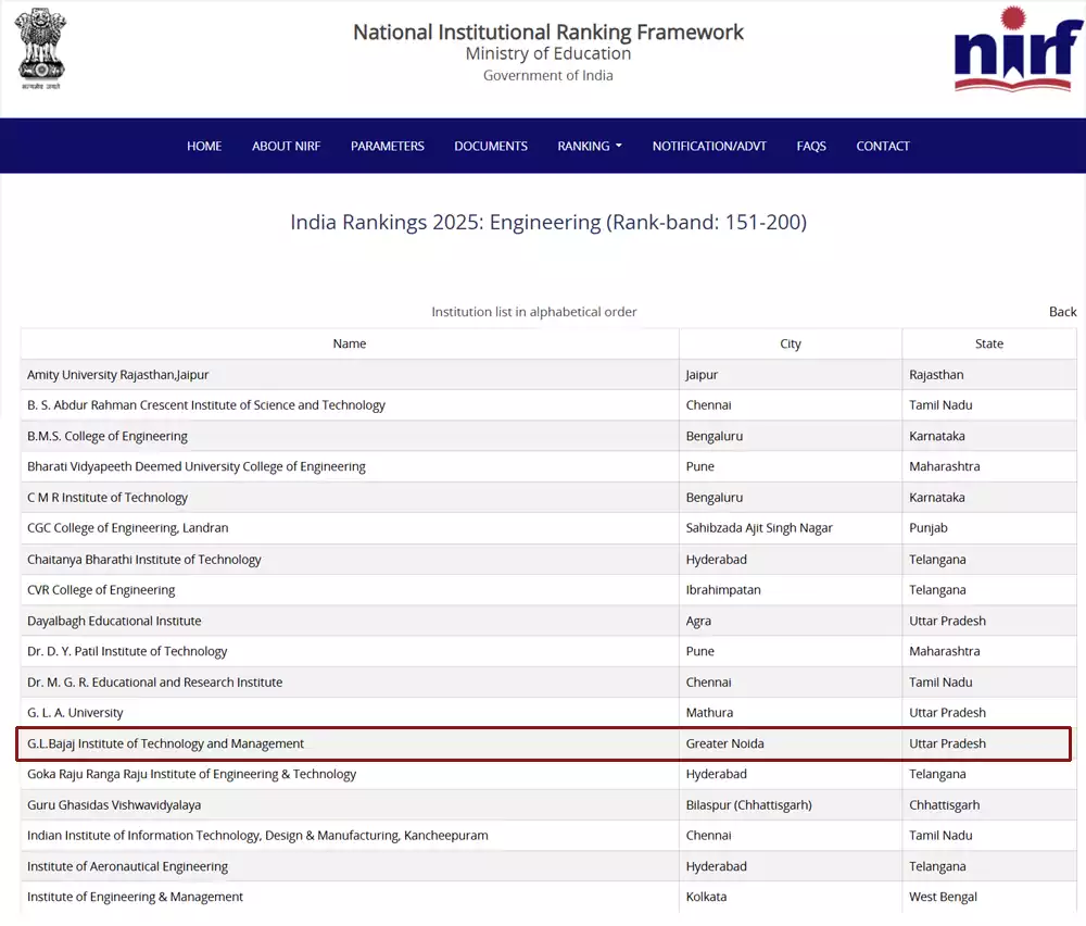 Ranked Amongst the Top 200 Engineering Colleges in India (www.nirfindia.org) |