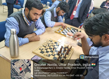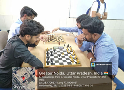The Department of MCA at GL Bajaj Institute of Technology and Management successfully organized an intellectually engaging event titled “Chess Quest.” Designed to encourage analytical thinking and strategic decision-making among students, the tournament turned out to be one of the most stimulating academic activities of the semester. A total of 32 participants enthusiastically battled across the chessboard, demonstrating remarkable focus, patience, and smart gameplay. Each round brought intense competition as players evaluated moves, anticipated strategies, and applied logical thinking under time pressure.