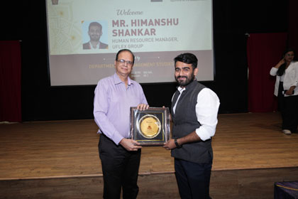 The Department of Management Studies organized an enlightening guest lecture on “HR Practices” on 12th November 2025 at SBG Hall. The session was conducted by Mr. Himanshu Shankar, HR Manager, UFLEX Group, who shared deep insights into modern HR practices and real-world challenges faced in the corporate environment.
